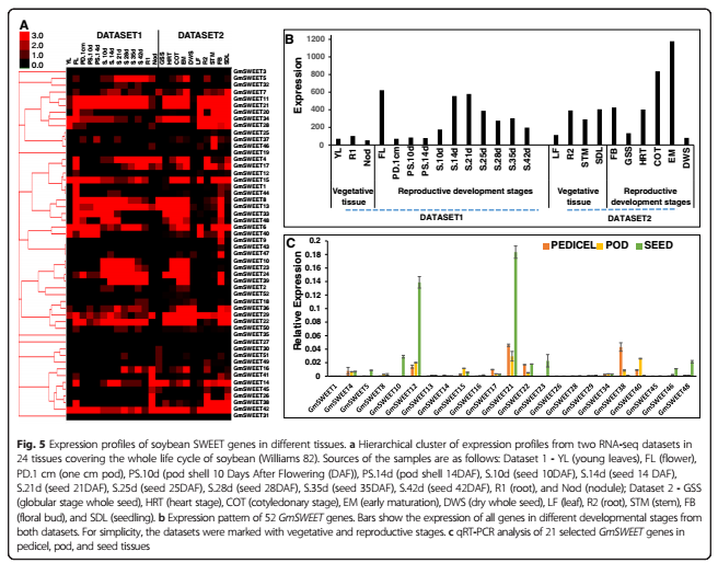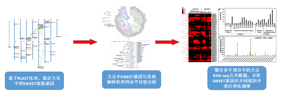 大豆研究套餐: 整個多個大豆RNA-seq公共數(shù)據(jù),分析SWEET基因家族在大豆生殖組織與營養(yǎng)組織間表達變化規(guī)律